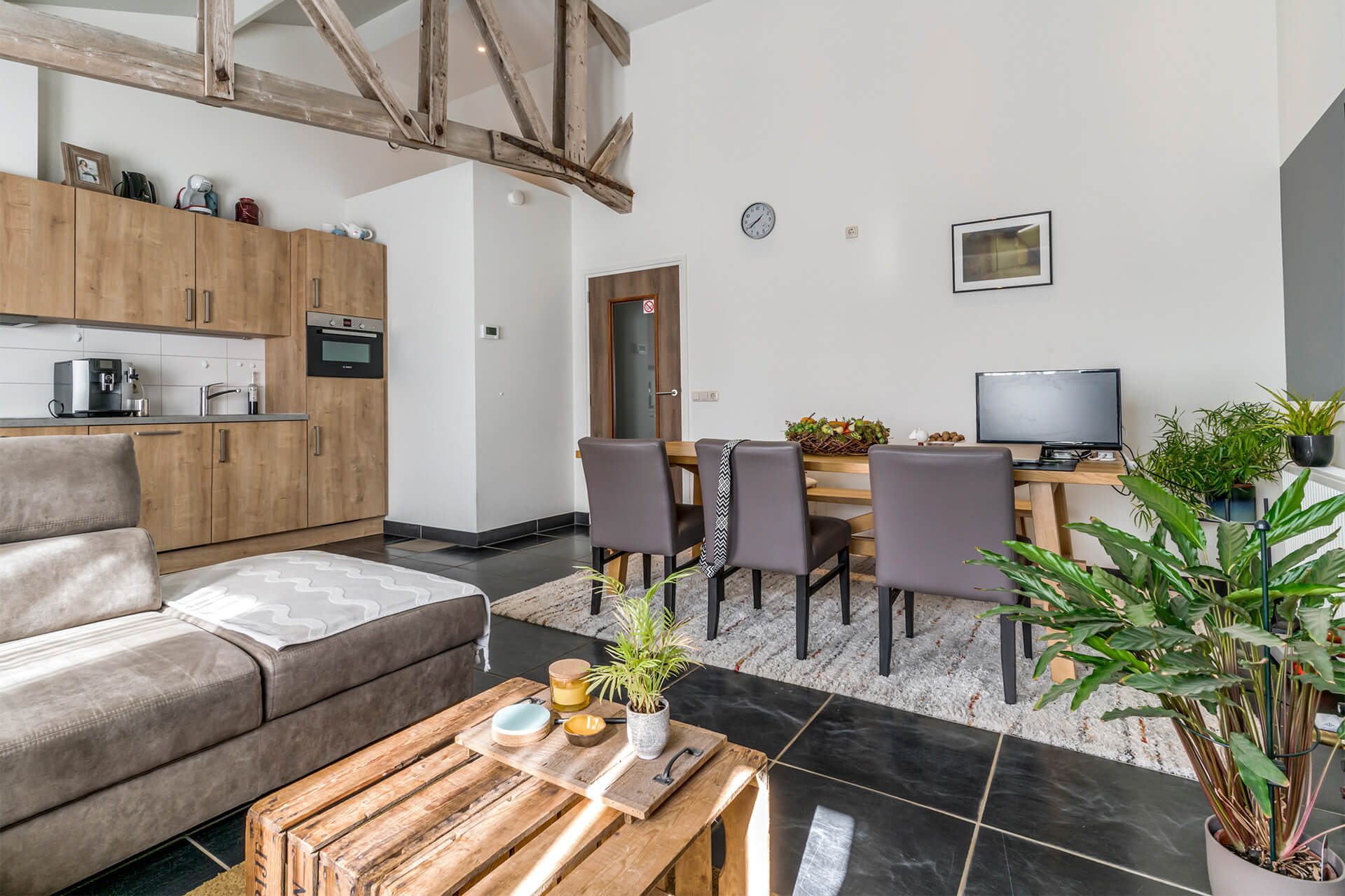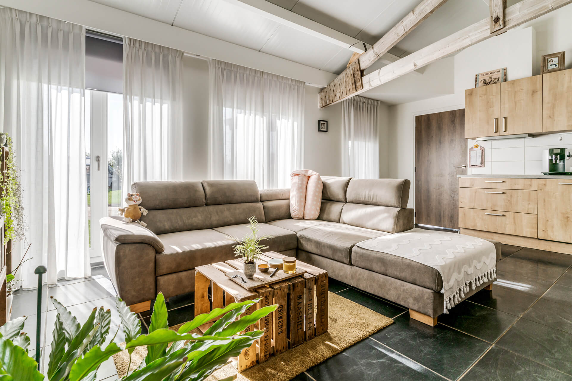 Natuurlijk zijn de huisjes voorzien van alle luxe, zoals een ruim leefgedeelte met slaapbank, een luxe eettafel, een keuken met vaatwasser, twee slaapkamers en als extra een sauna. De slaapbank is geschikt voor 2 personen.